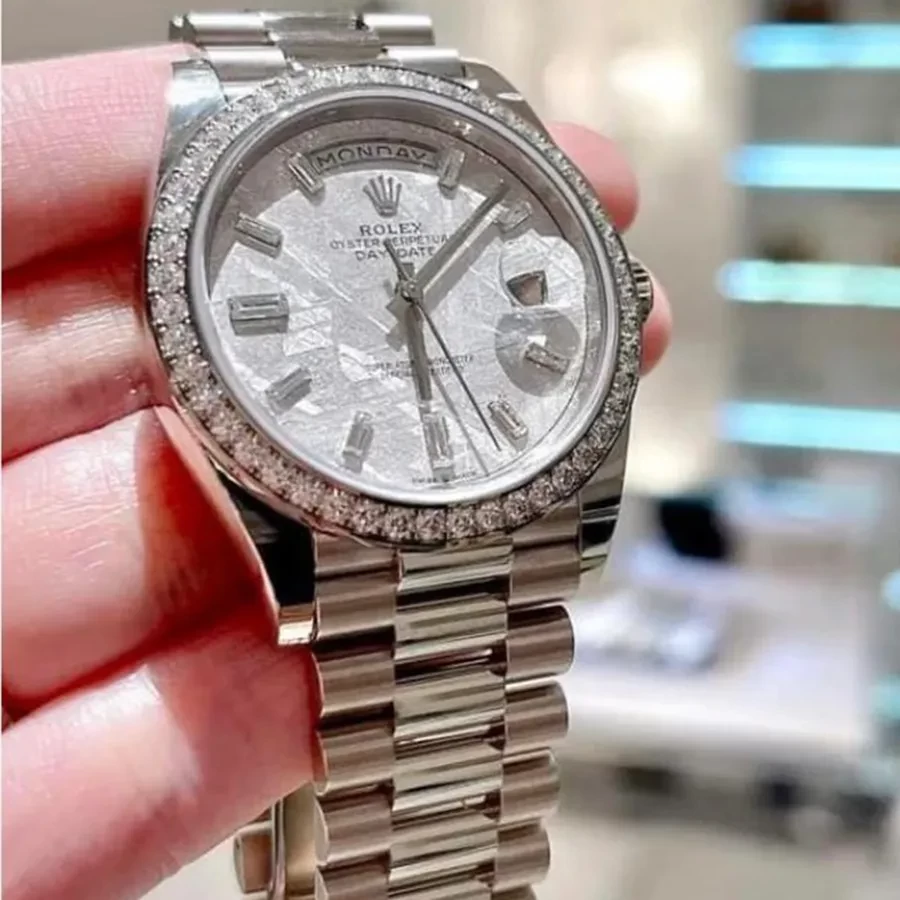 Hoàn thiện bằng bộ vỏ Oyster vàng trắng 18K tạo cảm giác “đầm” tay, đem đến những trải nghiệm sử dụng thật sự đẳng cấp và khác biệt. Sự kết hợp giữa mặt số tròn và dây đeo President 3 khớp nối mảnh, thiết kế bộ khóa gấp chắc chắn giúp ôm gọn vào cổ tay người dùng, tạo nên dấu ấn riêng của thương hiệu lâu đời.